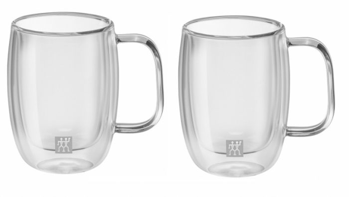 Set de dos vasos de café doble de la serie Sorrento Plus de ZWILLING, cada uno con una capacidad de 140 ml. El vidrio de borosilicato de doble pared de alta calidad mantiene el café caliente durante mucho tiempo, mientras que el vaso se puede agarrar fácilmente. Incluso cuando se sirve el café en estos vasos de doble pared hay una perspectiva diferente sobre la bebida caliente. El doble acristalamiento transparente atrae a todos los sentidos: olor, sensación, sabor y visión se intensifican con este vaso. Pero también se puede disfrutar de las bebidas frías, ya que se mantienen agradablemente frescas. Para fabricar estos vasos se utilizó un material que es muy ligero, duradero e irrompible. Puedes limpiarlos fácilmente en el lavavajillas e incluso calentarlos en el microondas. Disfruta de la intensidad de tu café en los vasos Sorrento Plus fabricados con la técnica de soplado de ZWILLING, diseñados por Matteo Thun y Antonio Rodríguez.